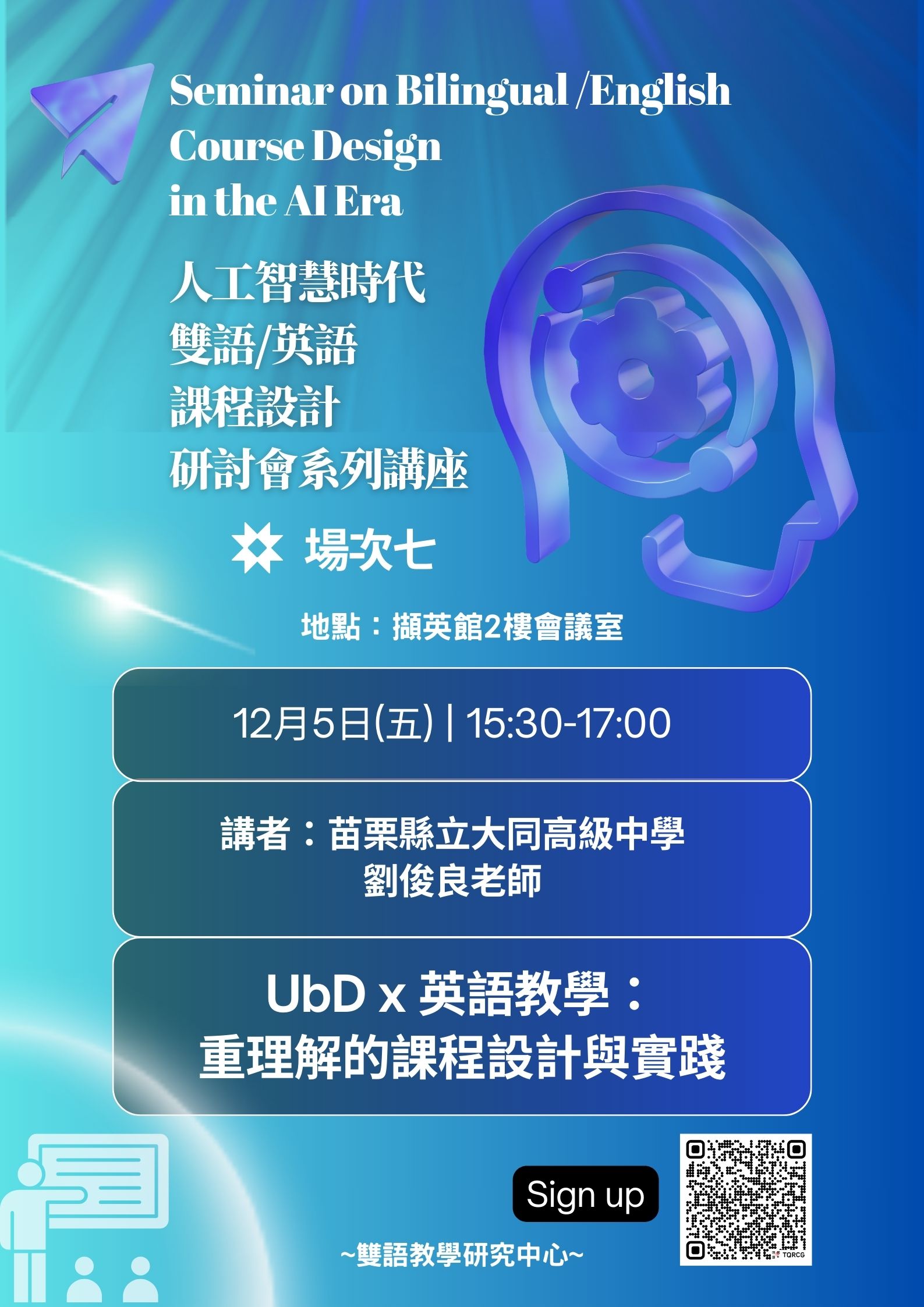 人工智慧時代雙語/英語課程設計研討會 歡迎踴躍報名參加